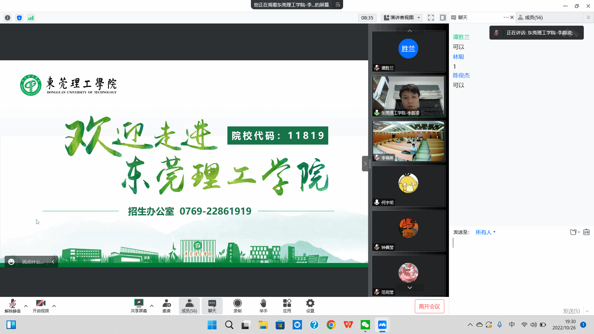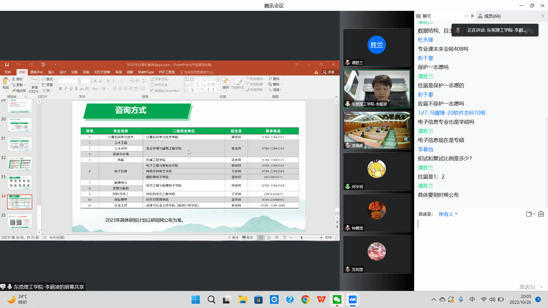李老师分四个模块,从我校办学规模,师资力量到我校的生活学习环境,并着重解读了计算机科学与技术专业的招生政策。随后,李老师介绍往年学院考取研究生情况。让广东科技学院的考生们了解本学位点的教育特色、培养条件和招生政策,激发同学们的报考热情。