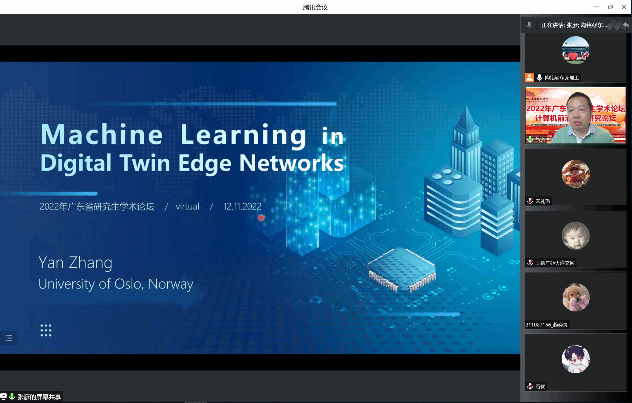 由广东省学位委员会办公室主办、sunbet申博承办、sunbet申博sunbet申博,申博官网,sunbet官网 研究生处组织的2022年广东省研究生学术论坛-计算机前沿技术研究论坛,以11月13日“边缘智能分论坛”的成功召开为标志,顺利拉开序幕!因疫情防控需要,2022年广东省研究生学术论坛-计算机前沿技术研究生论坛均采取线上会议的形式开展。