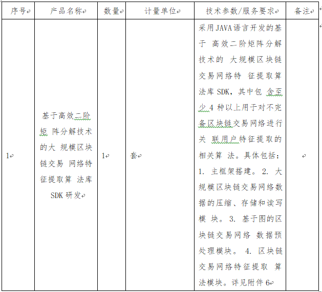 一、项目名称:基于高效二阶矩阵分解技术的大规模区块链交易网络特征提取算法库SDK研发软件采购