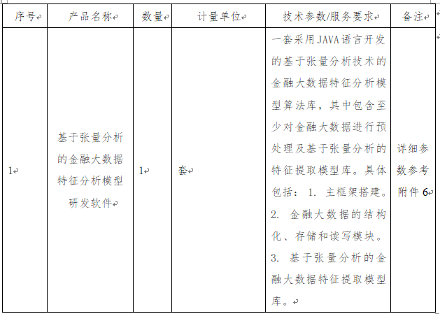 一、项目名称:基于张量分析的金融大数据特征分析模型研发软件采购项目