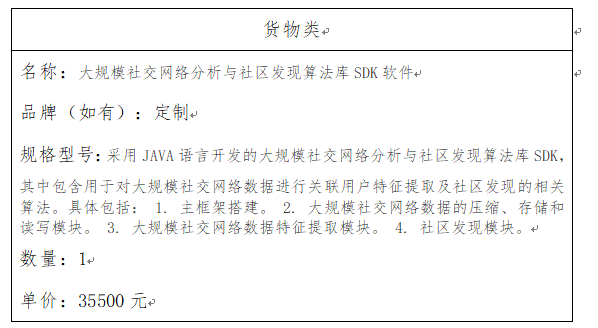 二、项目名称:大规模社交网络分析与社区发现算法库SDK软件采购项目