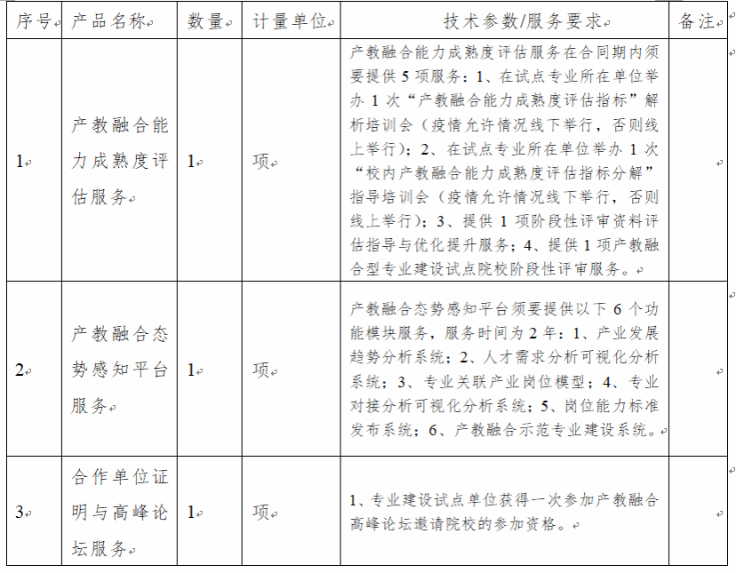 一、项目名称: 产教融合专业建设技术服务采购项目