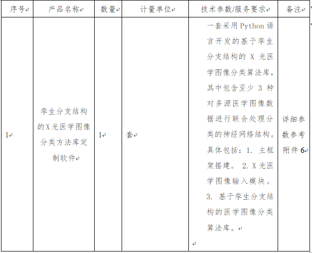 一、项目名称:孪生分支结构的X光医学图像分类方法库定制软件采购项目